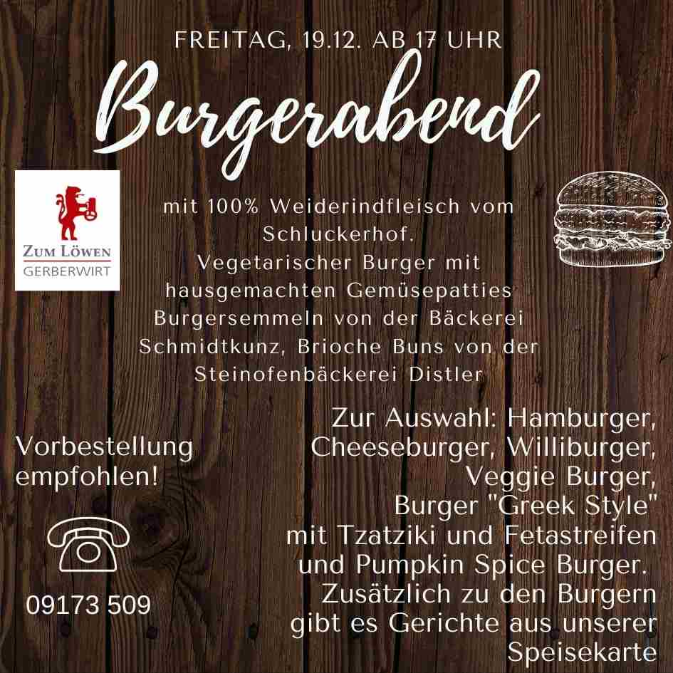 Burgerabend am 19.12. ab 17 Uhr mit Fleisch vom Feinschlucker Weiderind